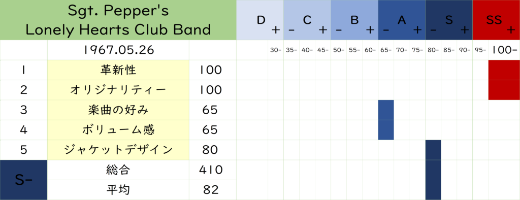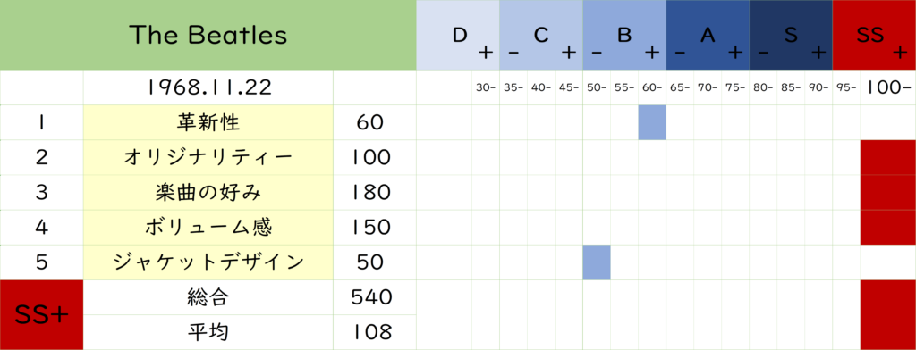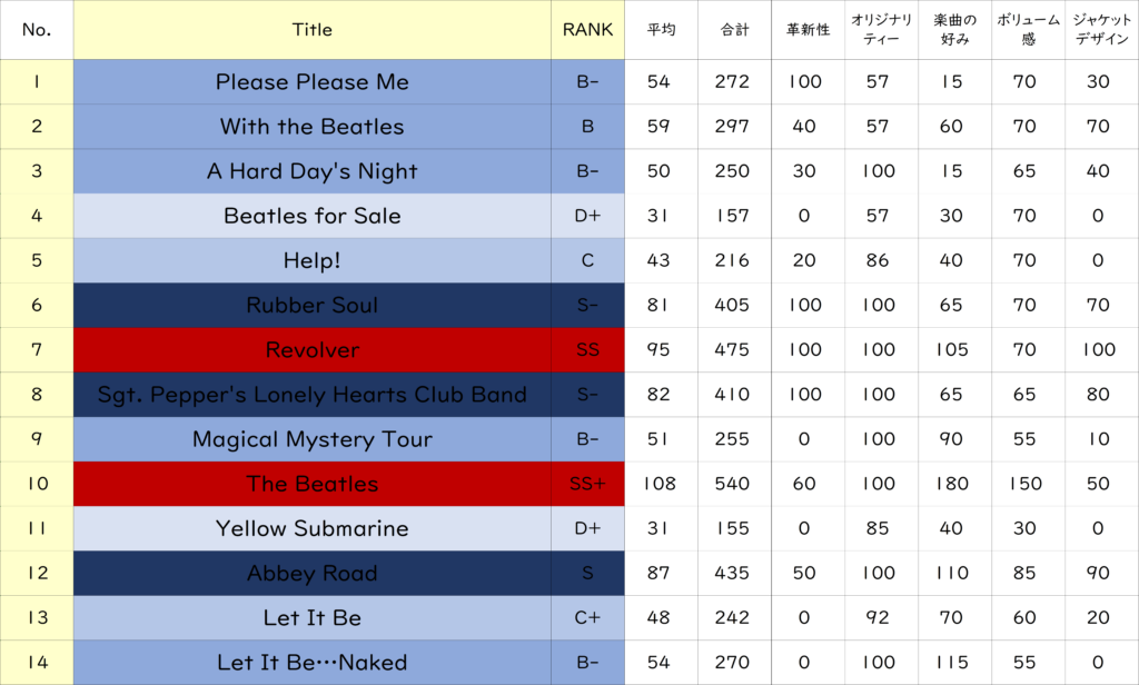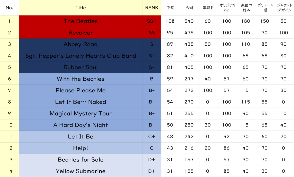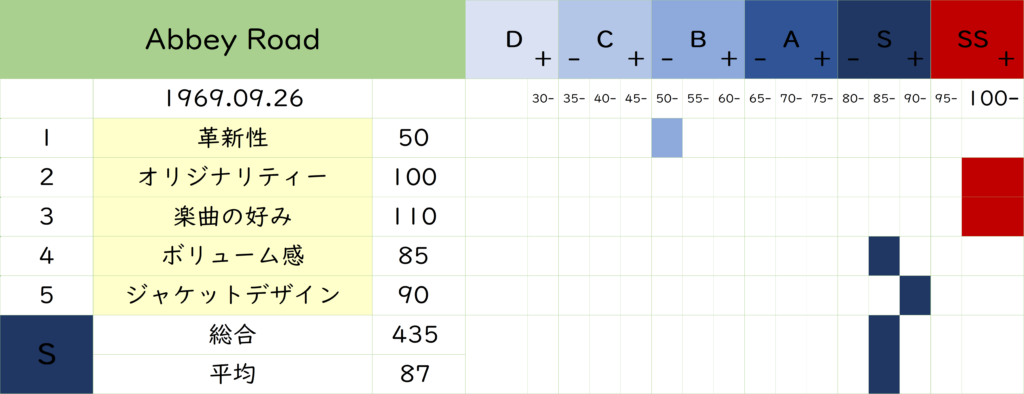比較すると元祖『Let It Be』のランクは 3ランク下の「D+」でした。