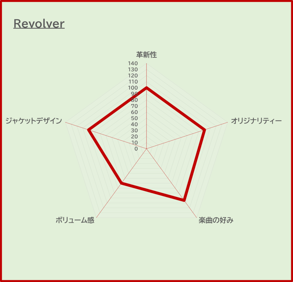 前作『Rubber Soul』での作品としてのアルバムの完成度が今作『Revolver』でさらに増すこととなりロックの革新性は一気に飛躍したと言えます。