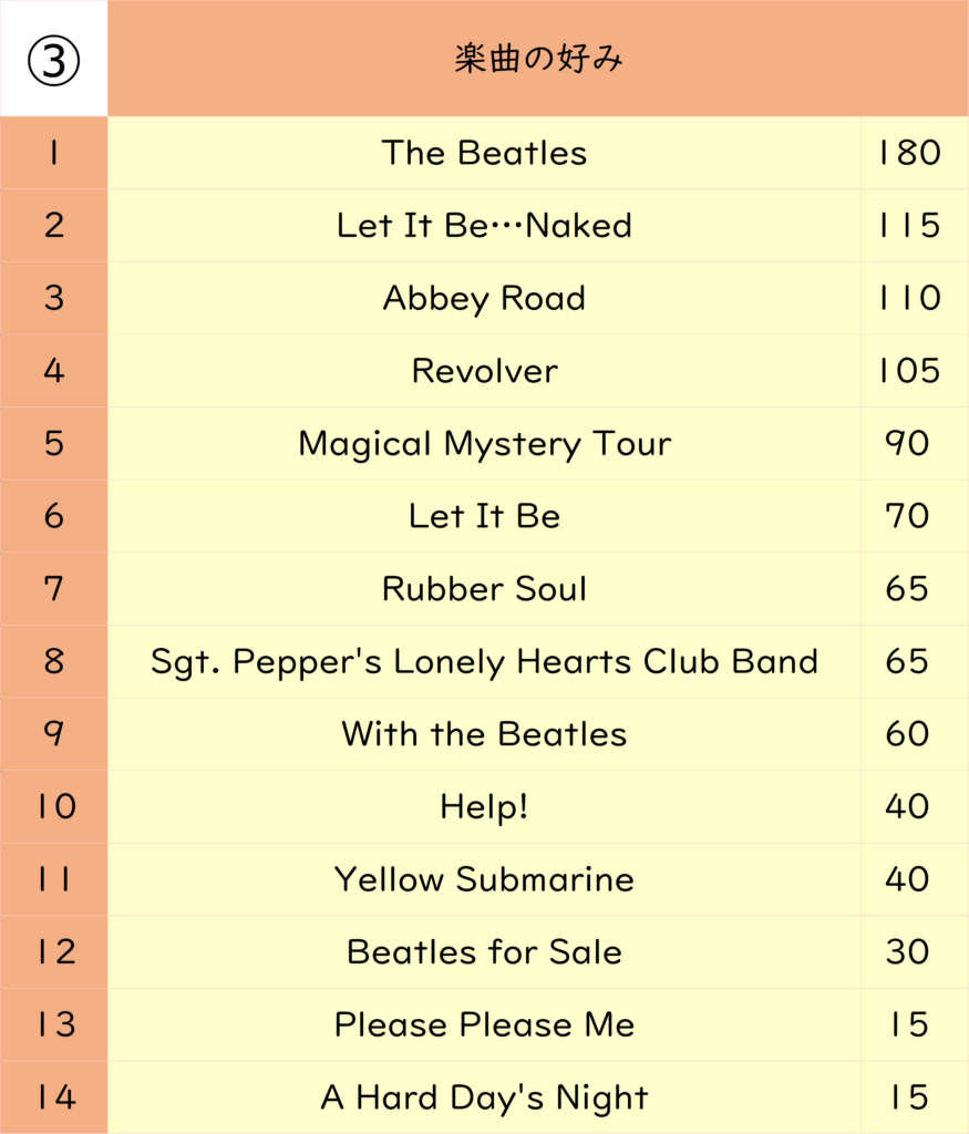 それでは『THE BEATLES ALBUM MY BEST10』の発表です。