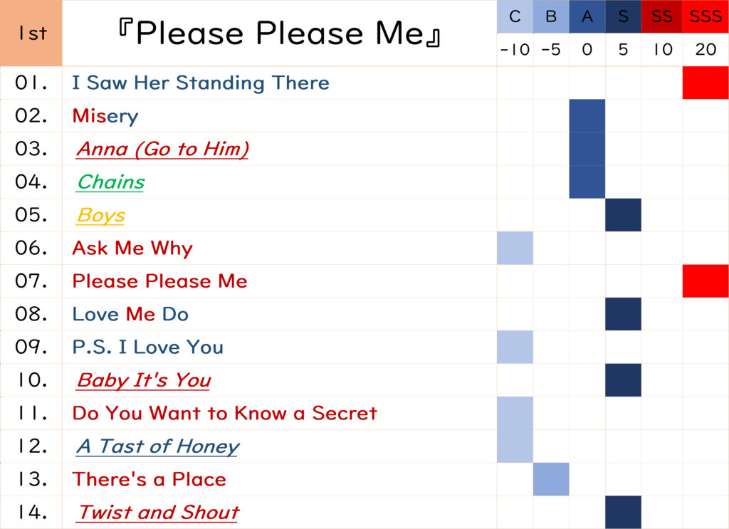 【楽曲の好み】は低くなりましたが、『Love Me Do』と『Please Please Me』の両シングルとカバー曲との共演が見物です。