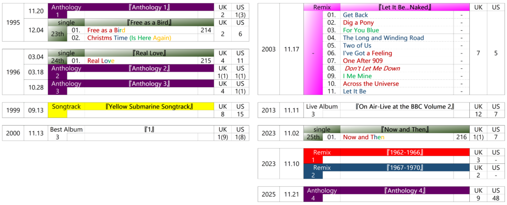 | 『1967-1970』『Anthology 3』『1』『Anthology 4』 | |