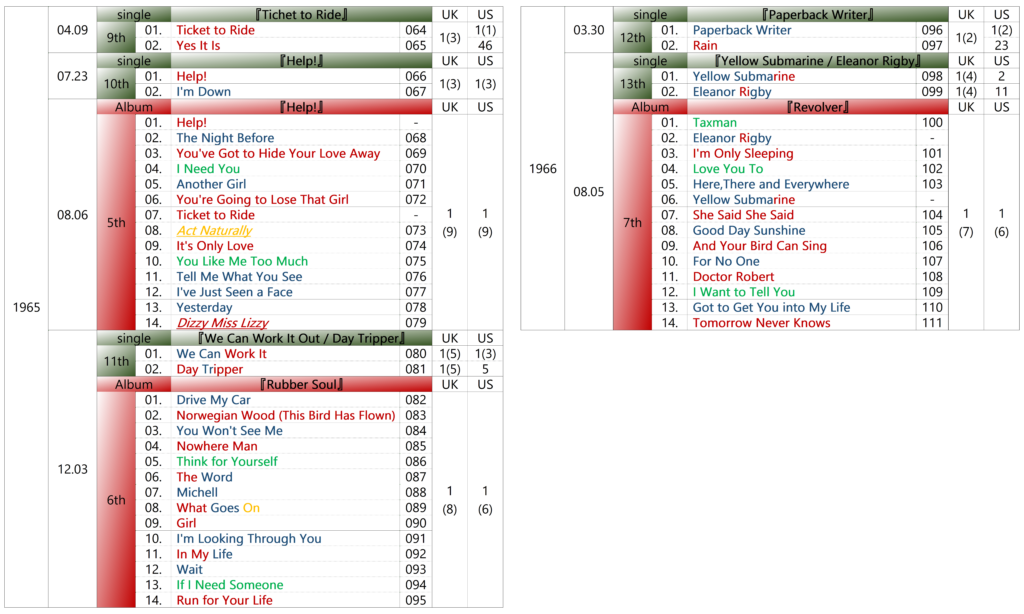 | record | single:『Help!』(10th/1965.07.23) Album:『Help!』(5th/1965.08.06) |