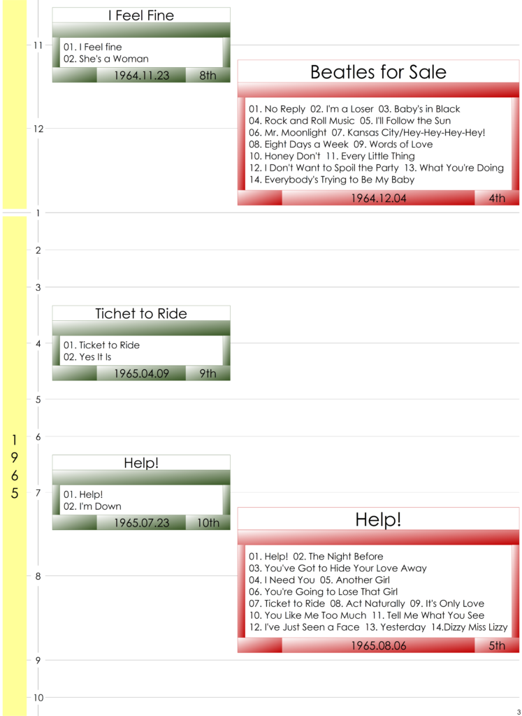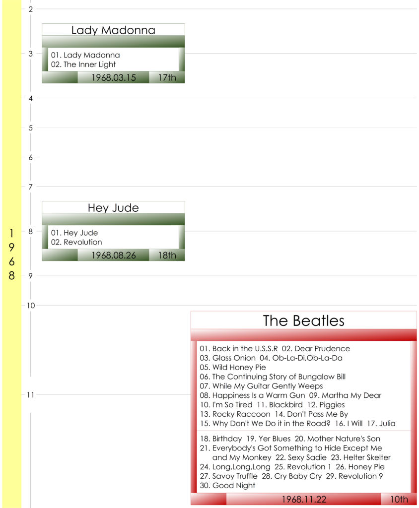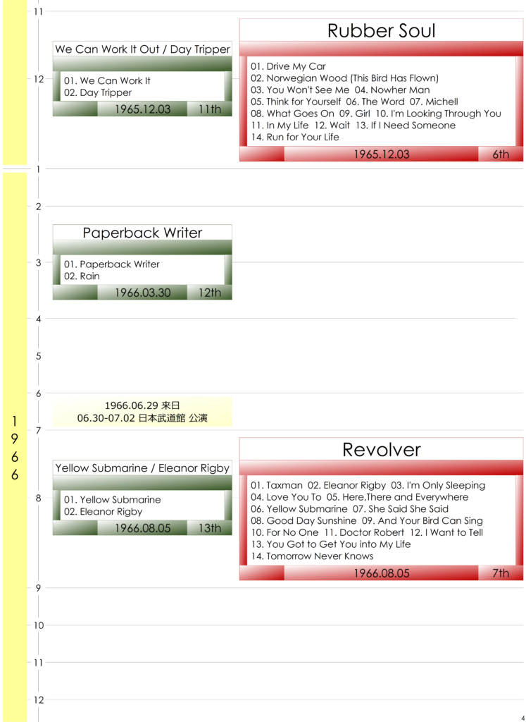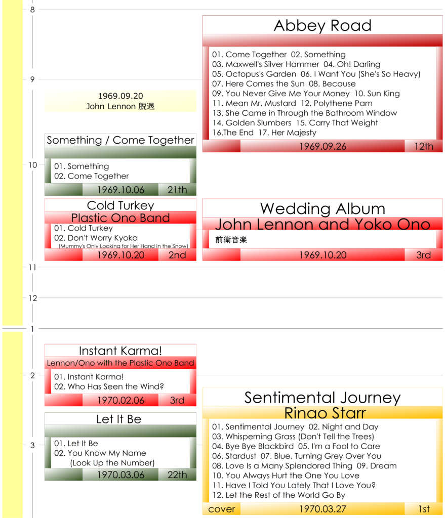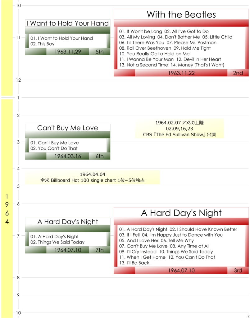 The Beatles がデビューしてからどのような活動を展開していたのか、ディスコグラフィーを基に年表を作成してみました。