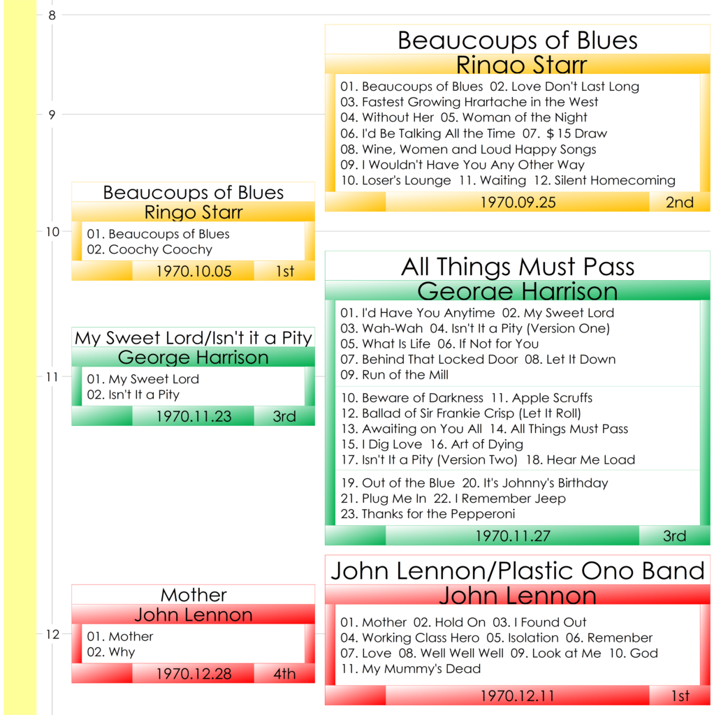 The Beatles の活動期間中だけでなく、解散後の各メンバーのソロ活動も追って行く長編連載企画となります。