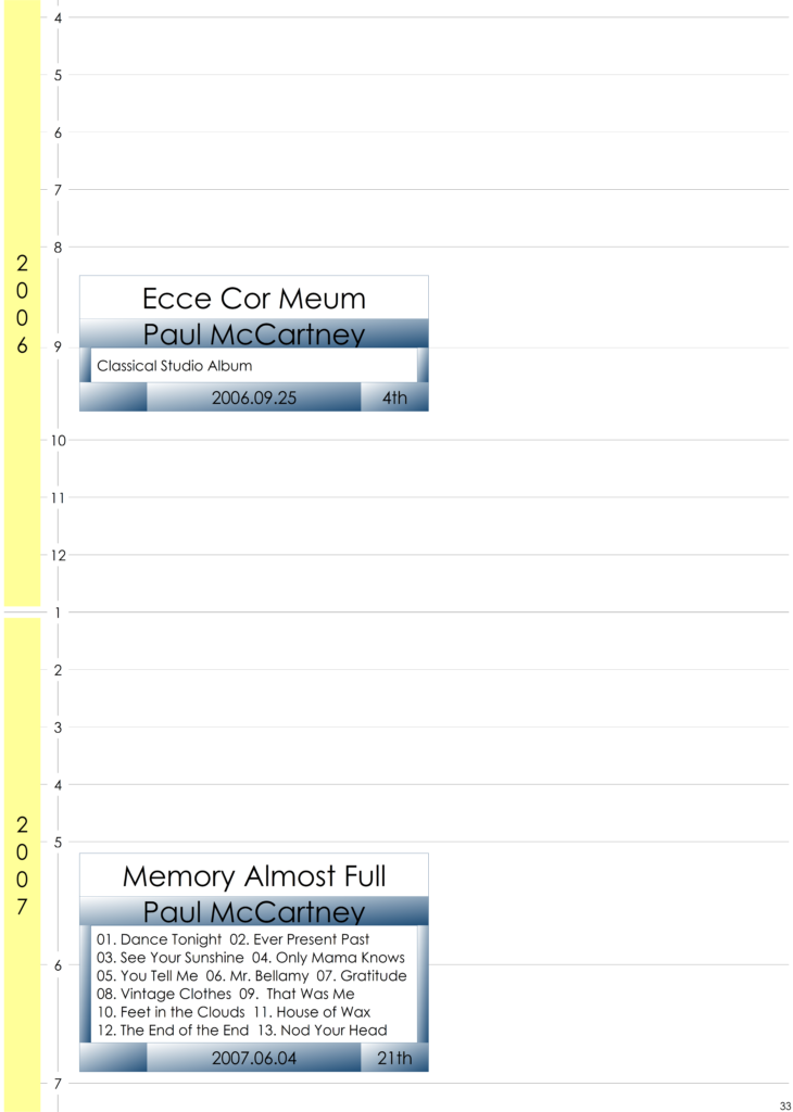The Rolling Stones を始めとする他のロックグループとの関係性・影響性・時代性などをアルバムのディスコグラフィーを基にした年表で追いかける企画、題して