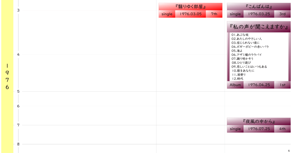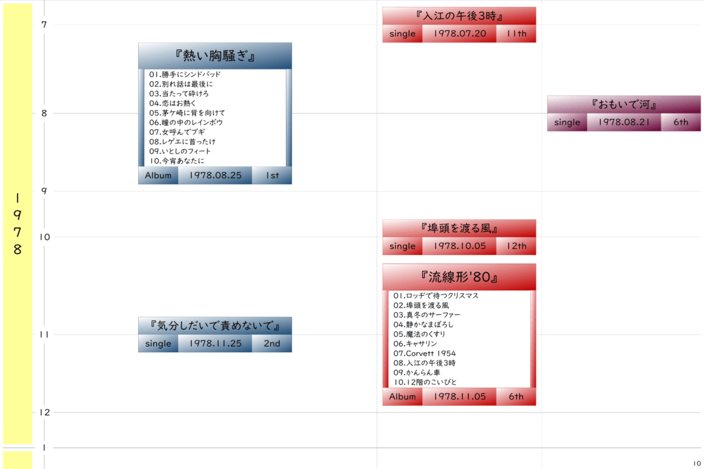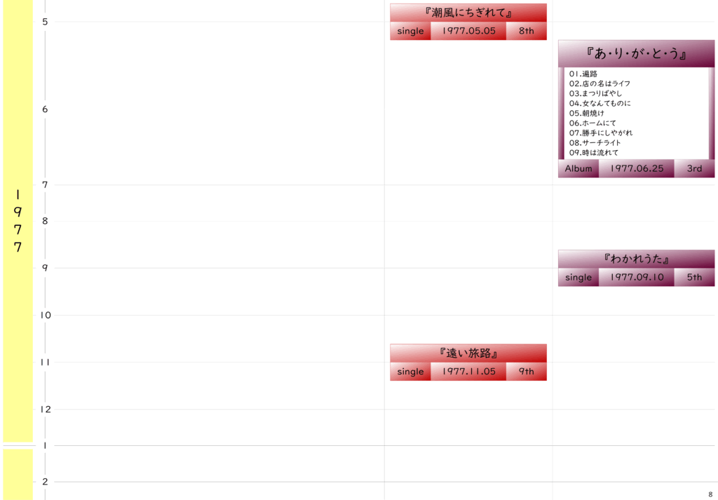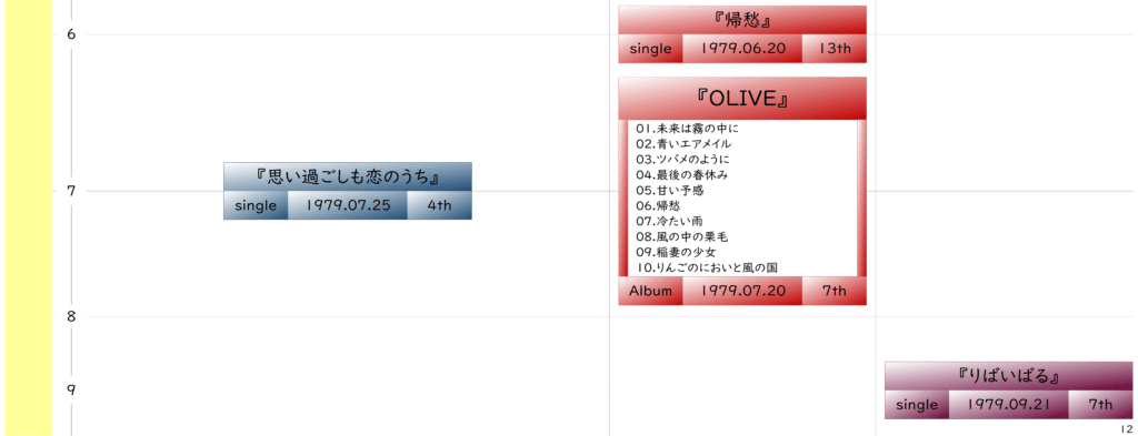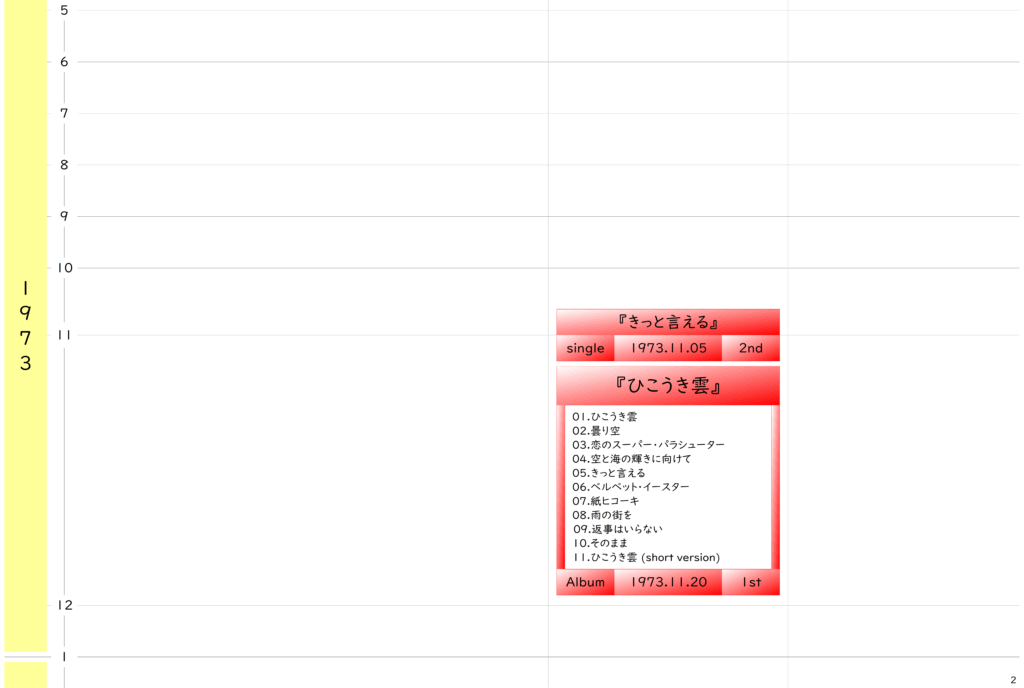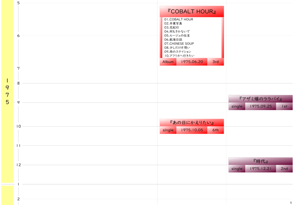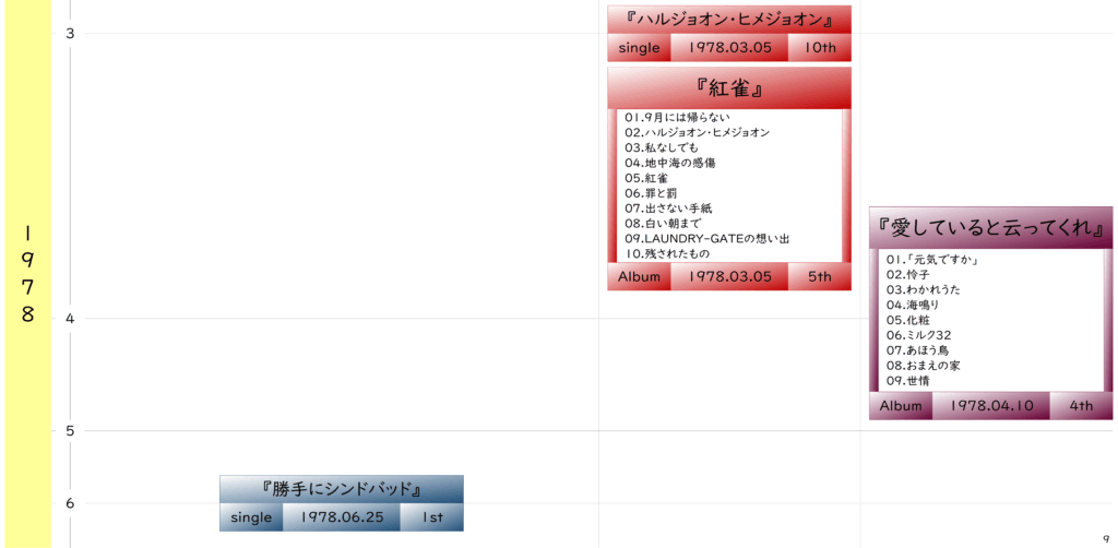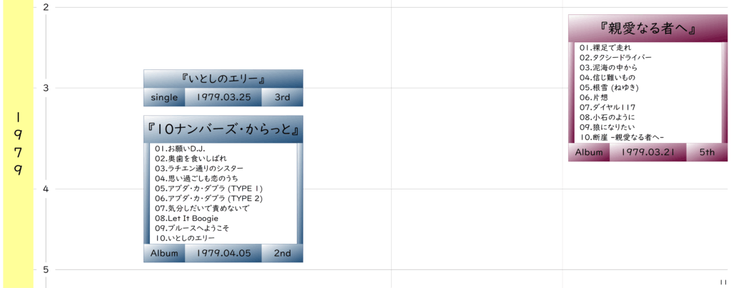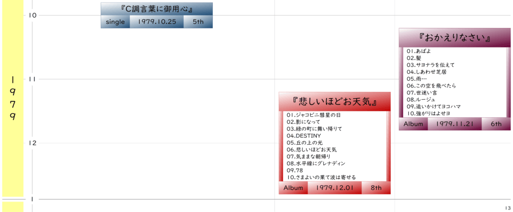 以前桑田佳祐さんの全楽曲からのMY BEST30の特集をしましたが、いつか松任谷由実さんと中島みゆきさんの同時特集MY BEST×2をしようと考えた時、その前に桑田さんも含めた3人同時のDISCOGRAPHYの年表を作ろうと思い至りました。