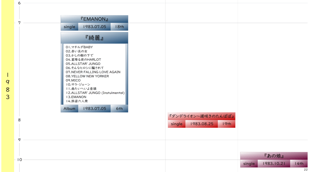 国内では、松田聖子さんを始めとするアイドル新時代到来による歌謡界の隆盛りゅうせいや空前のバンドブームなどがあり
