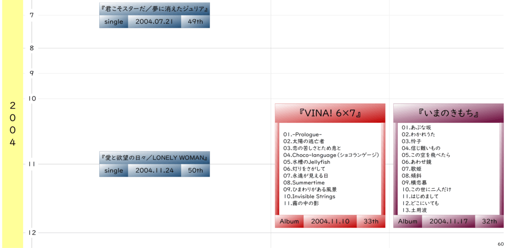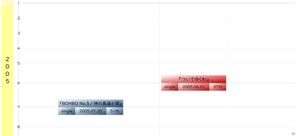 音楽界では、モーニング娘。の大ヒットとハロープロジェクトの飛躍,AKB48のデビューなどがあり、女性アイドルグループ群雄割拠前夜といった時代でした。