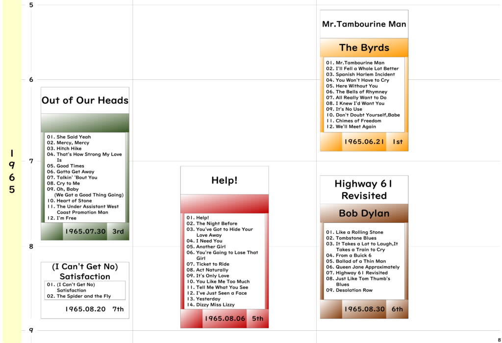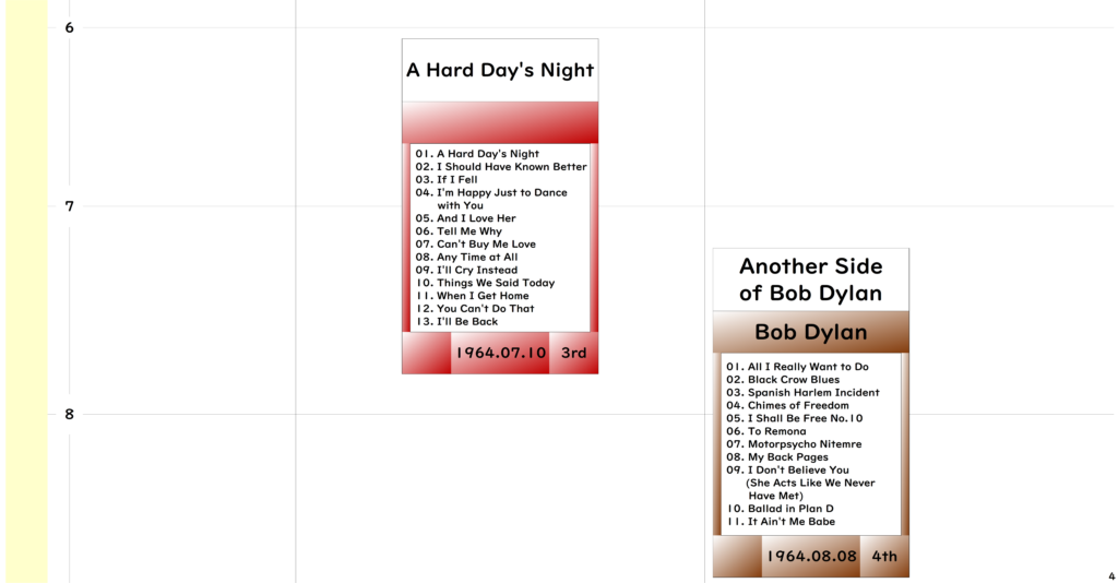 ●1960年代は「The Beatles」と Bob Dylan が驚異的な力でに引っ張っていたんだなあと思いました。