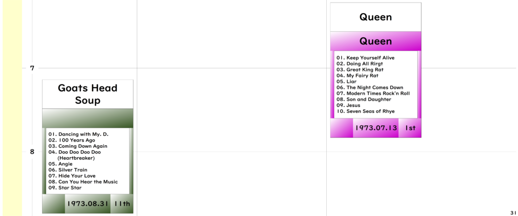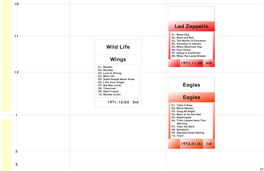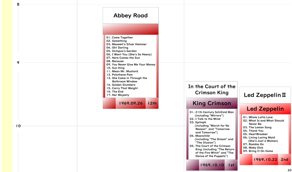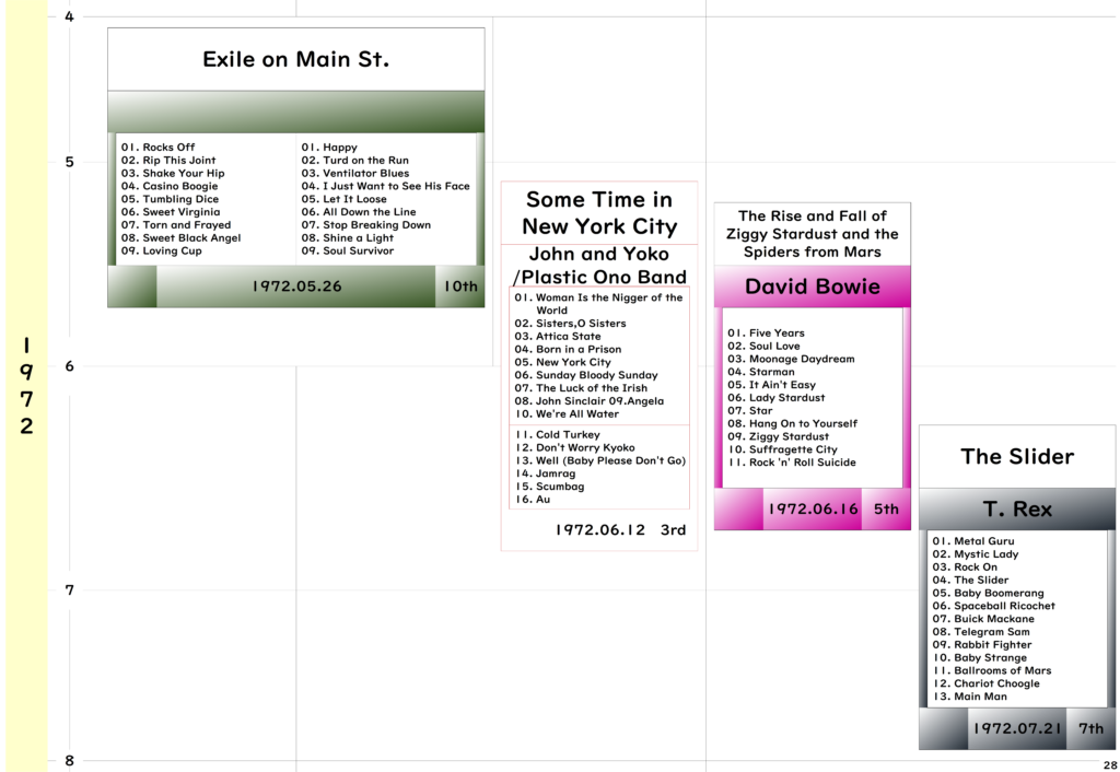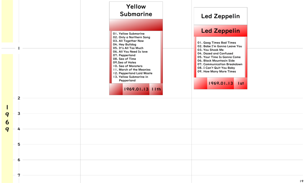 ●今回年表の期間としましては「The Beatles」のデビューアルバム『Please Please Me』リリースの1963年から「The Rolling Stones」のアルバム黄金期終わりの1973年までとしました。