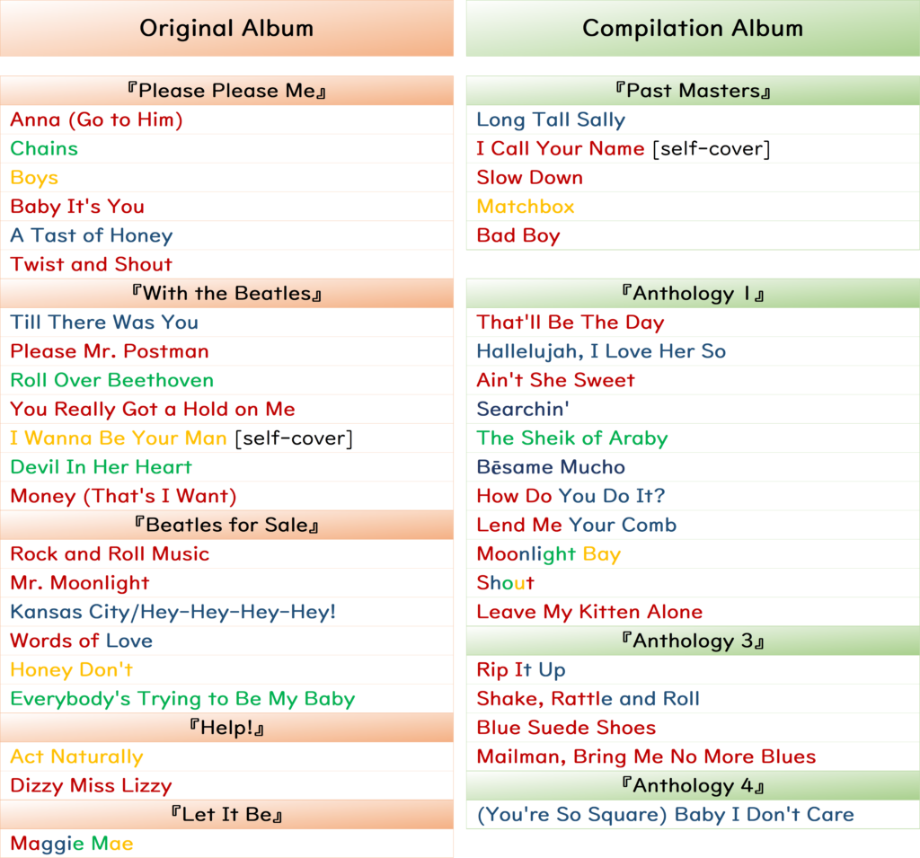 「The Beatles」が公式オリジナルアルバムに収録したカバー曲はセルフカバーも含めると全27曲。